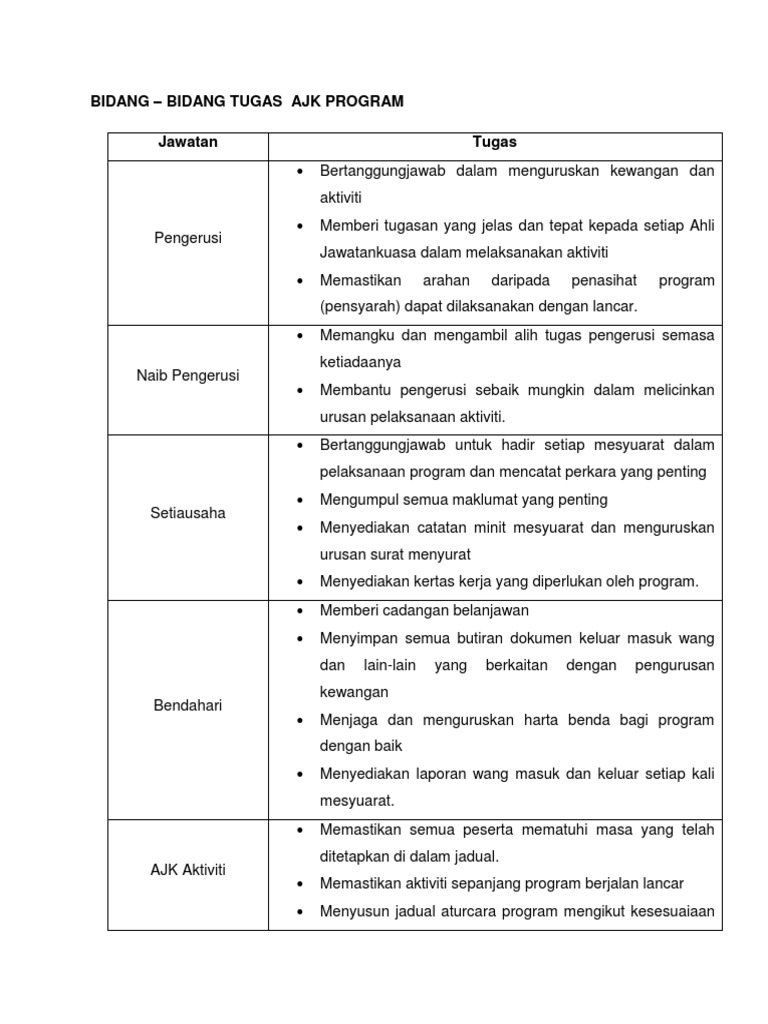 Senarai Tugas Ajk Pertandingan Pdf